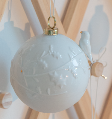 Artikelnummer: 92775Prachtige porseleinen kerstbal of beter ornament, want dat woord verdient dit mooi kerstitem.