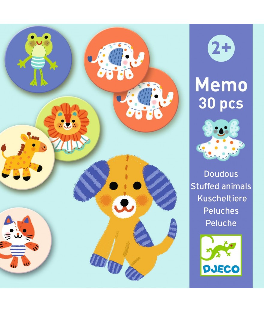 Memo Doudous is een combinatie- en geheugenspel rond het favoriete een dagelijkse thema van het kind: zijn/haar knuffel.