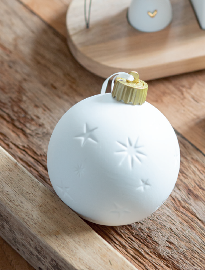 Materiaal: ongeglazuurd porselein met reliëf. Inclusief ledlamp met 3 LR44-lampjes.