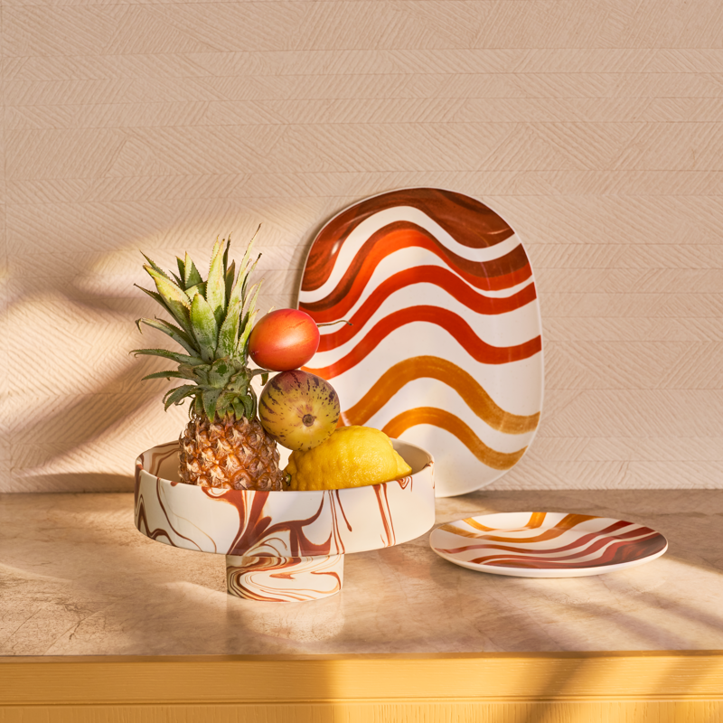 Artikelnummer: 107921Om als fruitschaal te gebruiken, als taartplateau, gebaksschaal, voor je lekkerste hapjes. Te gek deze serveerschaal van ceramiek in een soort van marmerprint.