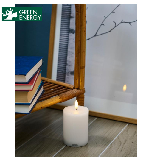 De vlam van de Sille-kaars is voorzien van onze Green Energy LED-diode. De vlam beweegt langzaam en verandert de lichtsterkte atmosferisch, waardoor een authentiek kaarslichteffect ontstaat. We hebben zowel de kleur als de toon van de gloed met ongelooflijke precisie bereikt, waardoor Sille-kaarsen moeilijk te onderscheiden zijn van traditionele kaarsen.