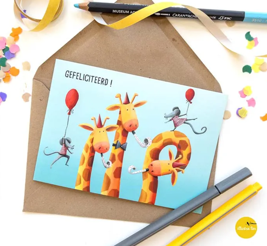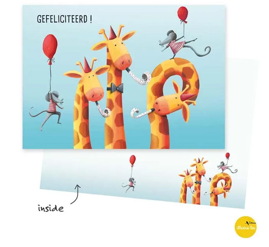 Artikelnummer: WK0006nlVrolijke gefeliciteerd kaart met giraffen