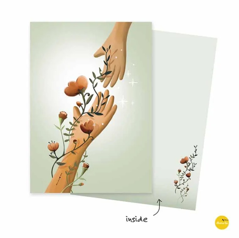 Wenskaart Bloemenhanden voor steun en troost
