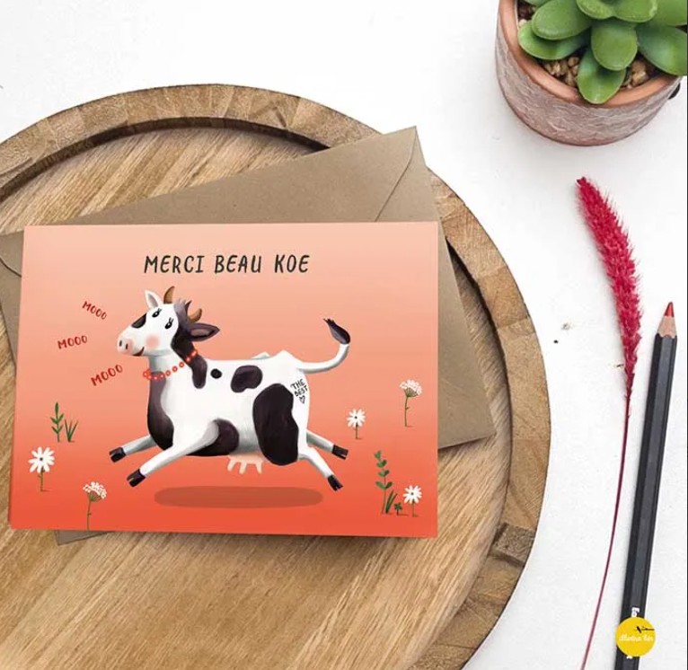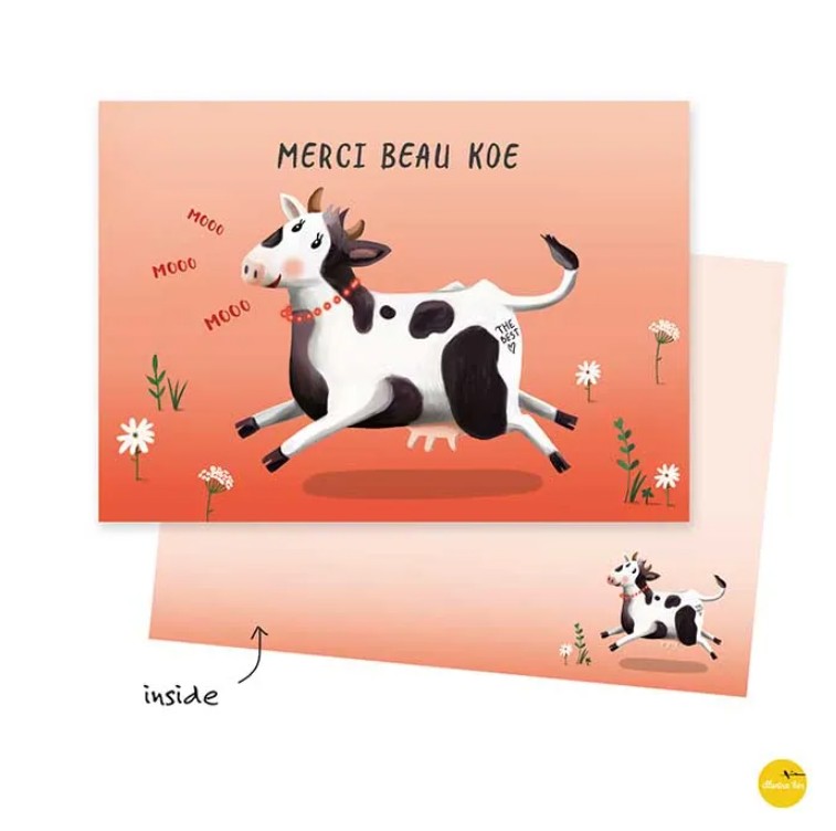 Wenskaart Merci Beau koe