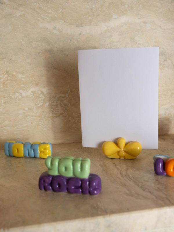 Gemaakt van keramiek. De kleur geel is de kleur geel die in de kaartenhouder home zit!