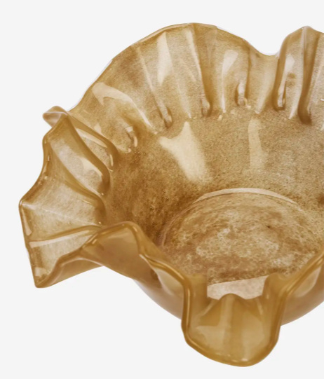Artikelnummer: 2411643BKaramelkleurige glazen kom met geplooide rand