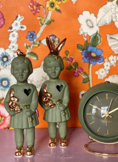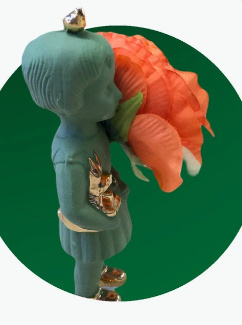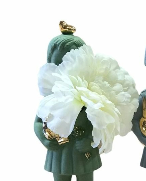 Ze heeft gouden schoentjes en is te gebruiken als mini-vaasje.