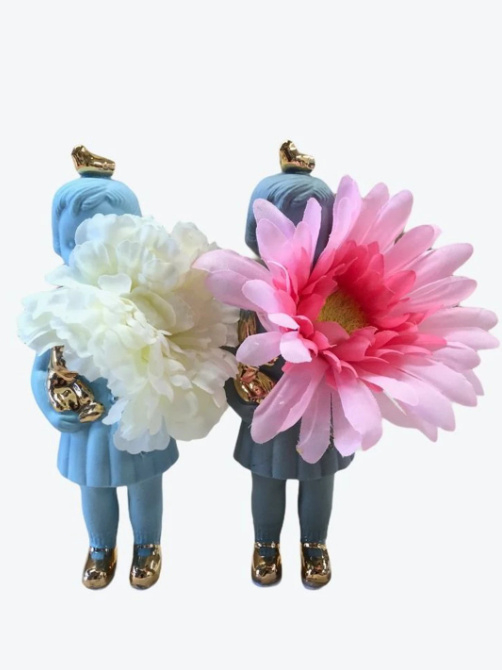 Ze heeft gouden schoentjes en is te gebruiken als mini-vaasje.