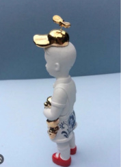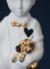 Kleine jongen is te gebruiken als vaasje voor één bloem.
