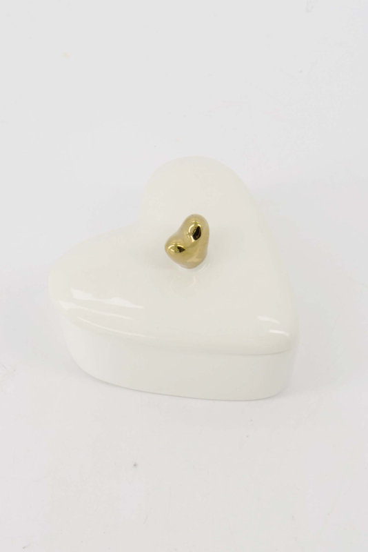 Artikelnummer: 0607-0006-7033bewaarpot keramiek hartvorm wit/goud