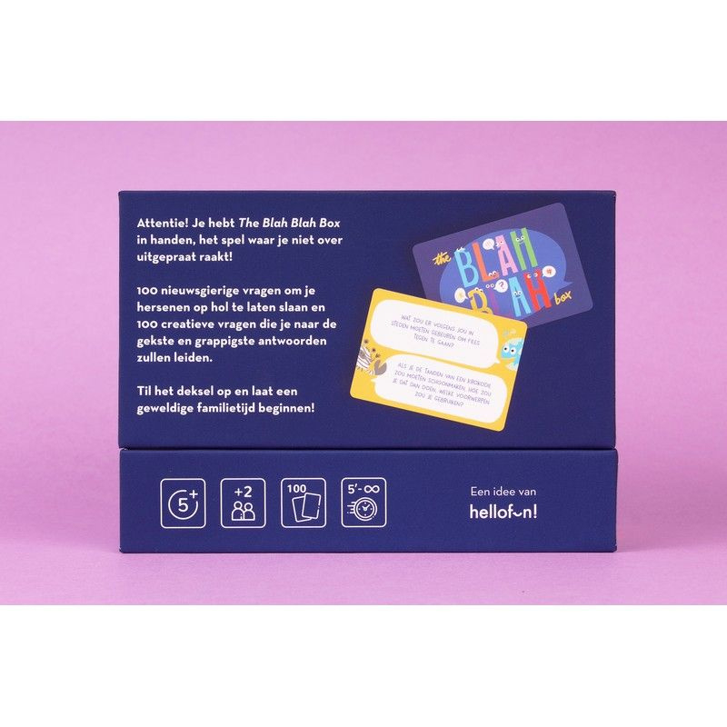 Het spel waar je niet over uitgepraat raakt! 100 nieuwsgierige vragen om je hersenen op hol te laten slaan en 100 creatieve vragen die je naar de gekste en grappigste antwoorden zullen leiden. Til het deksel op en laat een geweldige familietijd beginnen!