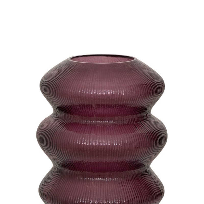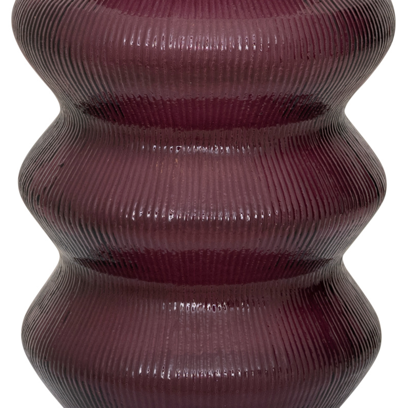 Een rijke, fudgekleurige, ondoorzichtige vaas gemaakt van gerecycled glas, met een golvende vorm en subtiele verticale texturen. Het vloeiende, sculpturale silhouet voegt warmte en ambachtelijke charme toe, waardoor het een speels maar verfijnd accent is voor een dressoir, console of zonnige hoek.