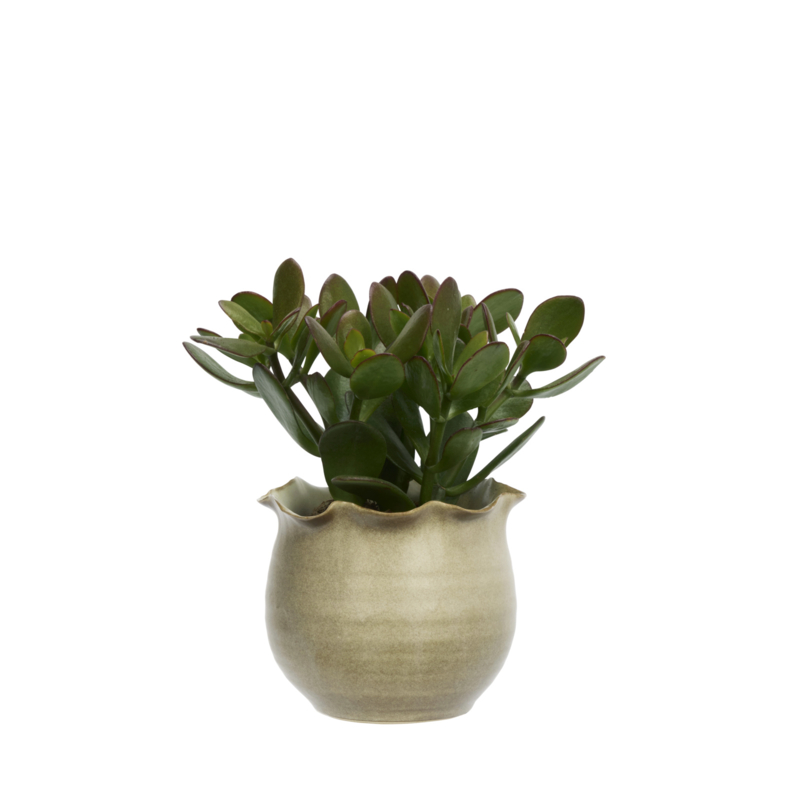 Van een vensterbank in China tot in uw huis: deze bloempot van steengoed voegt een kalme, natuurlijke sfeer toe aan elke ruimte. De fijne, golvende rand geeft de bloempot een vrouwelijke uitstraling en roept associaties op met de prachtige vormen van bloemhoofdjes. De natuurlijke kleur past goed bij de meeste planten en laat het blad en de bloemen opvallen in plaats van te concurreren. Elke ronding is weloverwogen en brengt een subtiele beweging naar planken, nachtkastjes of eethoekjes. Combineer deze bloempot van steengoed met hangende planten voor een zacht silhouet, of gebruik hem om één opvallende plant te omlijsten voor een meer aardse look. De beige tint past gemakkelijk bij houten, metalen en textiele oppervlakken, waardoor het een eenvoudig item is om mee te nemen in uw interieur naarmate uw ruimte verandert.