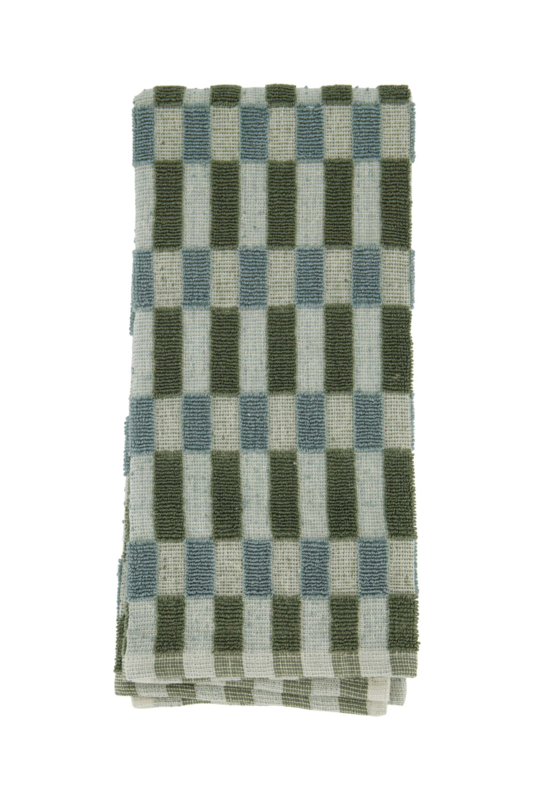 Keukenset "Jij bent zo leuk" grafisch patroon zand/grijs/groen