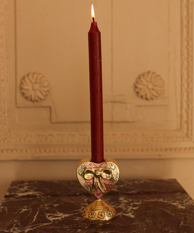Artikelnummer: 1.20.30.049.923.3Bolvormige hartvormige kaarsenhouder – Romantische messing kandelaar