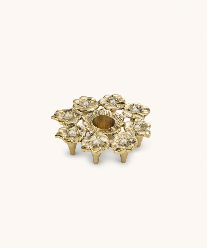 Artikelnummer: 1.20.30.048.923.3Zoey bloemenkaarsenhouder – elegant messing ontwerp met bloemenmotief