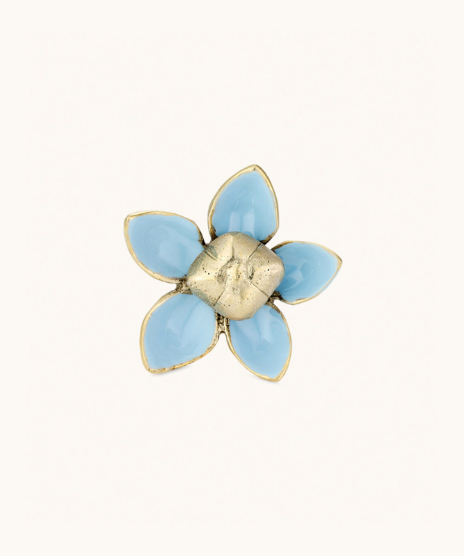 De Liv kastknop in lichtblauw is een speelse maar verfijnde toevoeging aan elk meubelstuk. Deze decoratieve, bloemvormige knop is gemaakt van goudkleurig messing en lichtblauw emaille, waardoor hij perfect past in romantische, klassieke of Scandinavische interieurs. De zachte tint en organische vorm geven uw ruimte charme en persoonlijkheid.