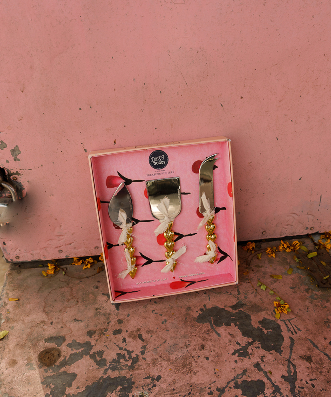 Deze messen zijn vervaardigd van voedselveilig roestvrij staal met handgegoten messing handgrepen en zijn zowel functioneel als decoratief. Het gouden hartje voegt een romantische, speelse noot toe aan uw tafelsetting.