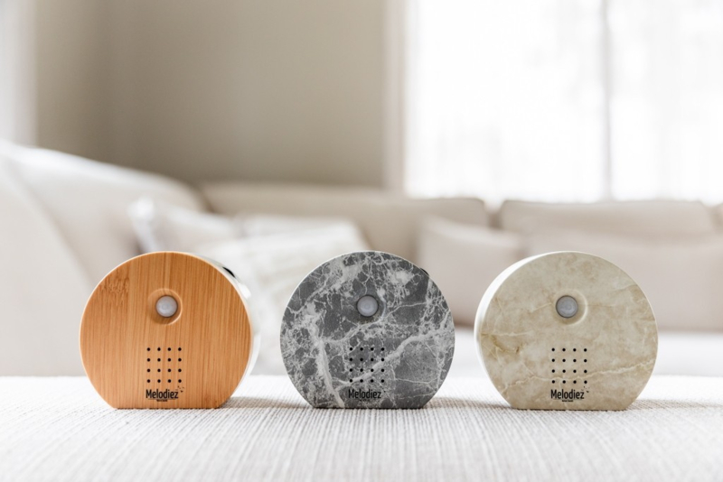 Verkrijgbaar in zes verfijnde afwerkingen – wit, hout, donker hout, natuursteen, marmer en zwart – past de Melodiez Nature Box moeiteloos in elk interieur. Door het compacte formaat (10 x 9 cm) en tijdloze design is het een subtiele blikvanger én geluidsbron in één. De box heeft een touchknop om te kiezen uit drie afspeelperiodes van 40, 80 of 120 seconde.