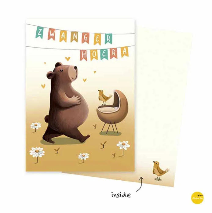 Een baby op komst? Stuur dan deze leuke wenskaart voor een zwangere.