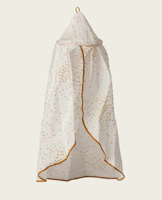 Deze prachtige bedhemel staat geweldig in elke babykamer. Een haakje om hem in het poppenhuis op te hangen is inbegrepen.