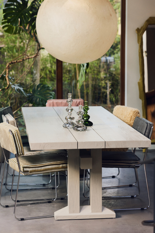 De samenwerking met glaskunstenaar Nienke Sikkema voelde minder als een samenwerking en meer als een stap in een ander universum. Haar wereld is er een van smeltende timing, gecontroleerde chaos en vormen die zich gedragen als gebeeldhouwd licht. Samen creëerden we een familie van glazen objecten die aanvoelen als hedendaagse edelstenen – zwaar, stralend en een beetje eigenzinnig.