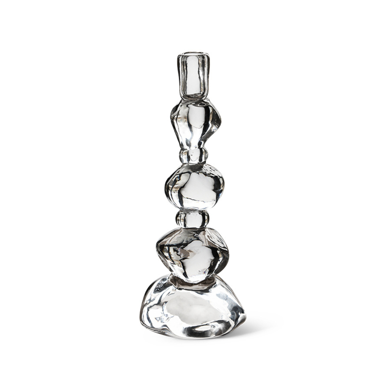 De samenwerking met glaskunstenaar Nienke Sikkema voelde minder als een samenwerking en meer als een stap in een ander universum. Haar wereld is er een van vloeiende timing, gecontroleerde chaos en vormen die zich gedragen als gebeeldhouwd licht. Samen creëerden we een familie van glazen objecten die aanvoelen als hedendaagse edelstenen – zwaar, lichtgevend en een beetje eigenzinnig.