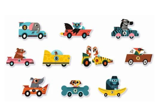 Artikelnummer: DJ08148Spelenderwijs leren welk nummer er op iedere raceauto staan en welk dier er in de auto zit.