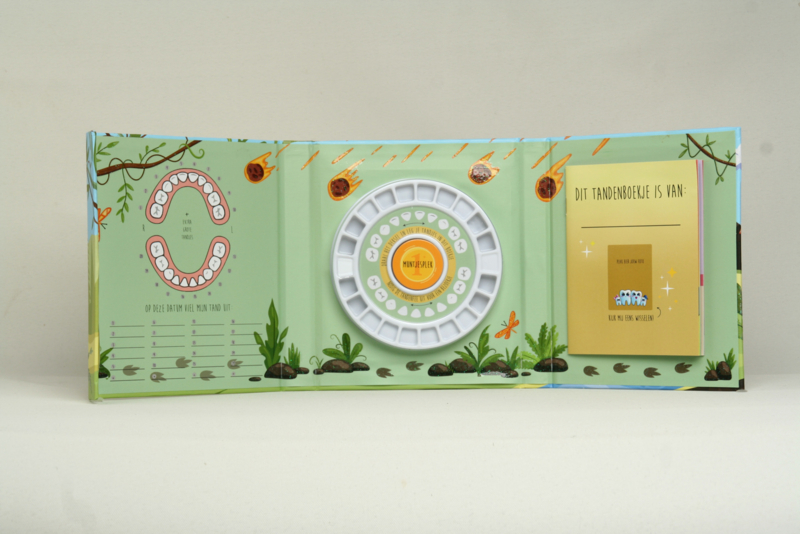 Het boekje bestaat uit een handige houder met draaivakjes waar elke tand zijn eigen plaats heeft. Er is plaats voor een foto en bij elke tand kun je bijhouden wanneer deze gewisseld is.