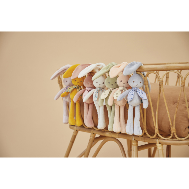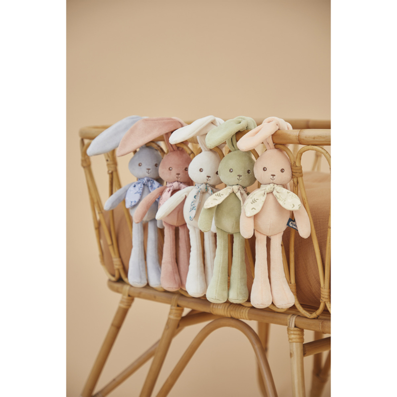 Dit groene vrolijk klein konijntje heeft zulke lange oren dat je hem overal kunt vasthaken om hem te bewaren en nooit te verliezen. Je kunt alles met hem doen: op je hoofd staan, schommelen, ophangen aan de wasdraad.