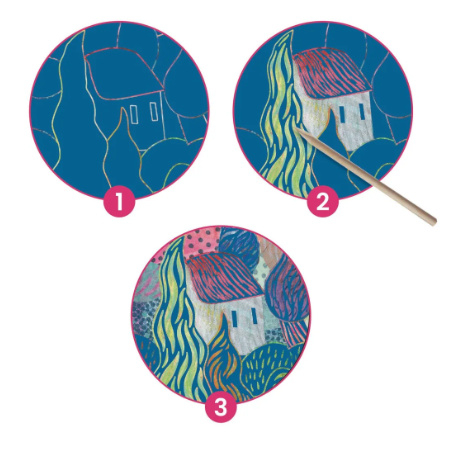 Artikelnummer: DJ09378Een boekje kraskaarten om de stijl van Vincent Van Gogh, de grote vooroorlogse meester, te ontdekken. De houten pen wordt gebruikt om op het oppervlak van de kaarten te krassen, waardoor de door de illustrator bedachte tekeningen verschijnen. Zo worden de tekeningen geleidelijk onthuld en komen de landschappen tot leven.