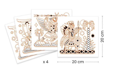 Inhoud: 4 geïllustreerde kaarten om in te kleuren (20 x 20 cm).