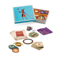 Inhoud: 31 accessoires (karton, plastic, stof), 1 spel kaarten en 1 volledig met uitleg.