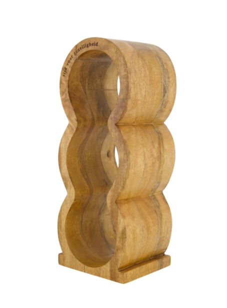 Dit houten wijnrek naturel is perfect om je favoriete flessen stijlvol op te bergen. Met zijn unieke, golvende vorm en natuurlijke kleur past het wijnrek mooi bij diverse interieurstijlen.