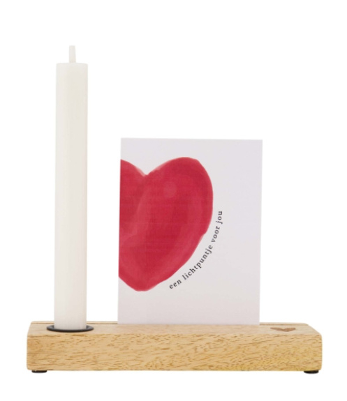 Dit houten gedenkaltaar, uitgevoerd in naturel hout, is een subtiel en troostrijk element om dierbare herinneringen een plekje te geven. Met ruimte voor een kaars en een kaart, creëer je een persoonlijke sfeer vol betekenis.