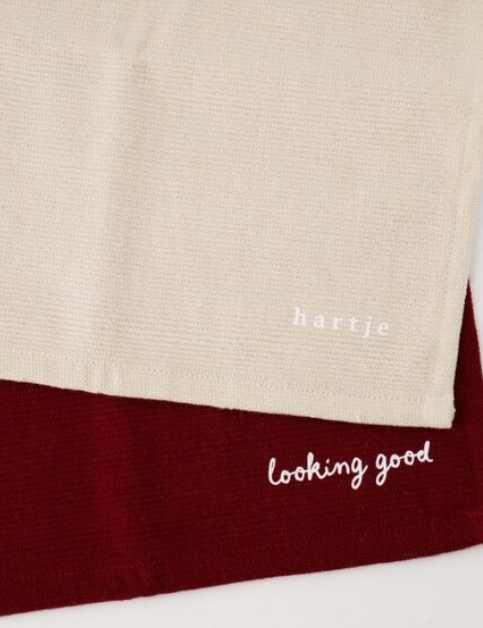 Breng sfeer en functionaliteit samen in je keuken met deze prachtige set vaatdoekjes van Zusss. De combinatie van zandkleur en port zorgt voor een rustige, stijlvolle uitstraling, terwijl de subtiele hartjes en fijne tekstdetails een speels accent toevoegen.