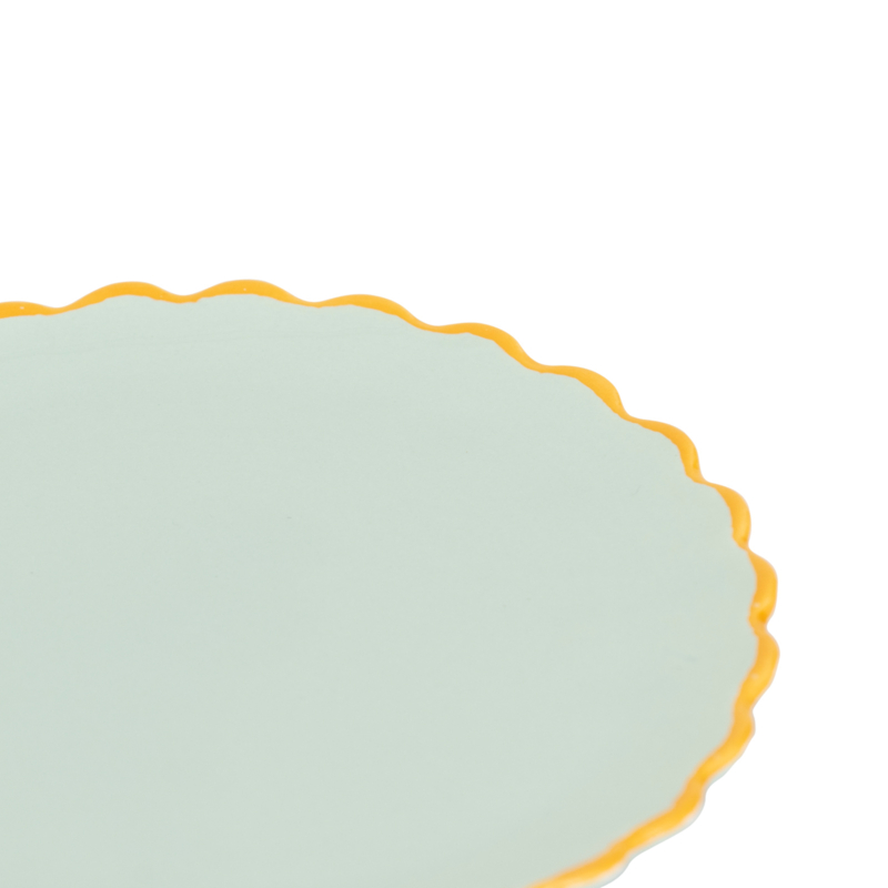 Artikelnummer: 108864Dit kleine keramische bordje in celadonkleur met een handgeschilderde, geschulpte rand in een contrasterende kleur is perfect voor petit fours, theeblaadjes of kleine lekkernijen. Het bordje, uit de Good Morning-collectie, voegt met zijn oudroze tint een romantische noot toe aan uw tafel. Een vrolijk klein stukje dat van elke traktatie iets bijzonders maakt.