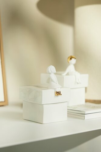 Artikelnummer: 18776Leuk voorraad potje met erop een meisje met gouden schoentjes.