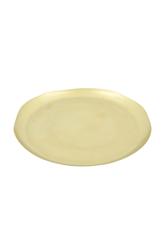 Dit gouden stylingbord is gemaakt van metaal en heeft een diameter van 30 cm, wat het perfect maakt voor decoratie of het serveren van lekkernijen. Dankzij het robuuste metaal en de elegante gouden kleur geeft het stylingbord een warme, luxe uitstraling.