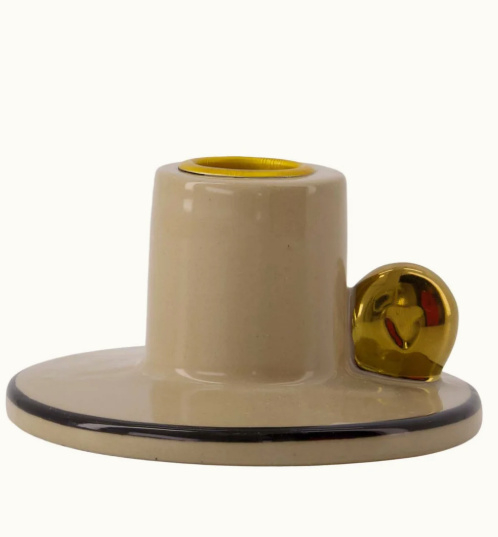 Gemaakt van hoogwaardig keramiek, straalt deze zandkleurige kandelaar warmte uit, terwijl het gouden hartje een speels accent geeft.