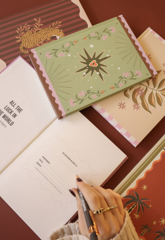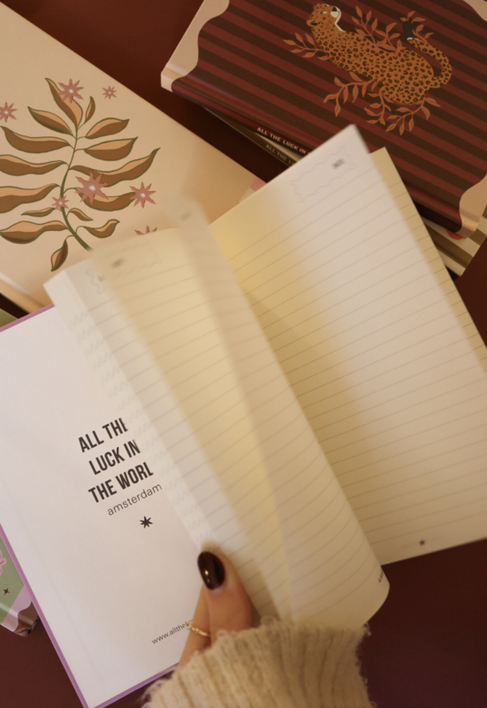 Deze Notitieboekjes zijn speciaal voor jou ontworpen door ons All the Luck in the World Design Team. Ze zijn gemaakt van stevig papier met een harde linnen kaft. Alle pagina’s zijn voorzien van fijne lijntjes, ideaal voor schrijven, noteren of plannen. Op de eerste bladzijde kun je je eigen gegevens invullen, zo maak je het notitieboek officieel van jou!