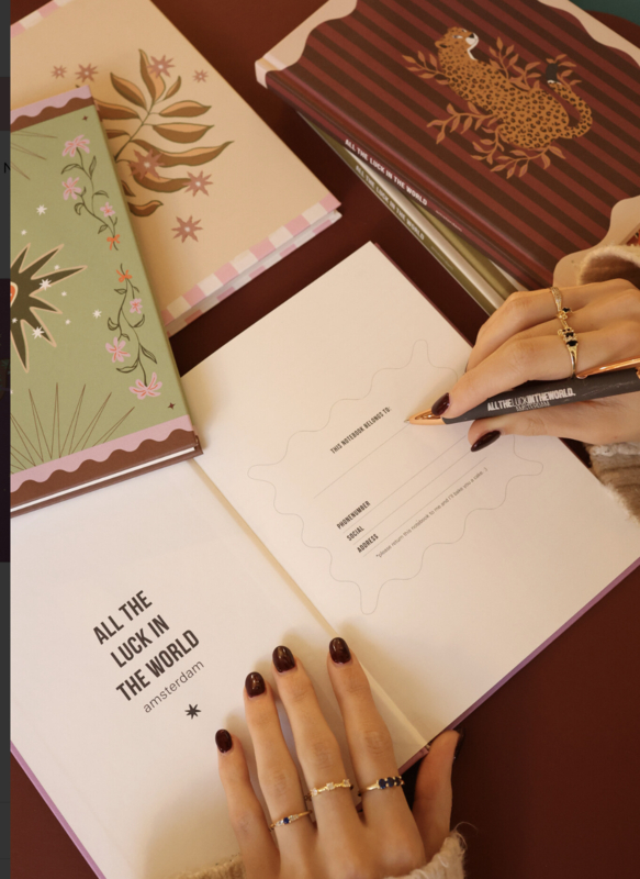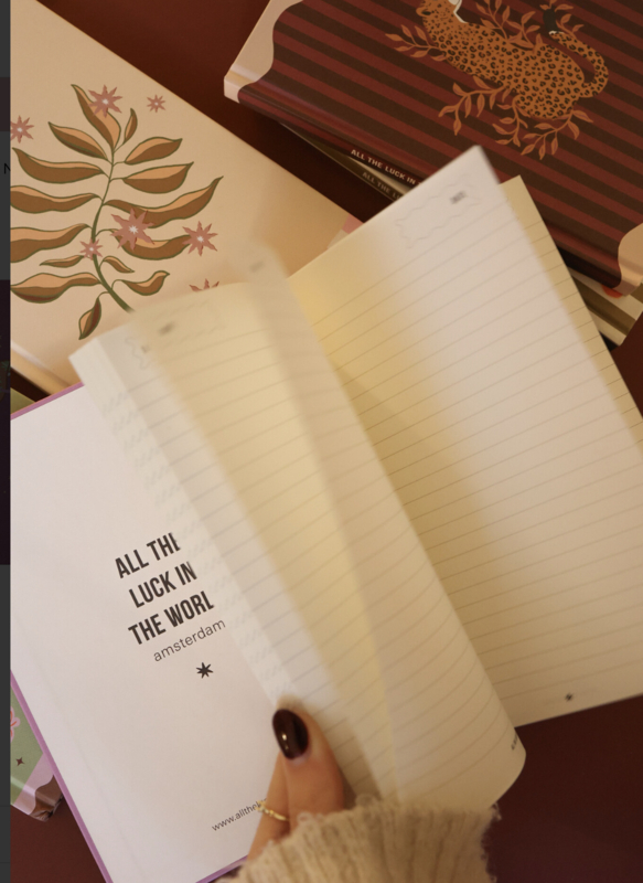 Deze Notitieboekjes zijn speciaal voor jou ontworpen door ons All the Luck in the World Design Team. Ze zijn gemaakt van stevig papier met een harde linnen kaft. Alle pagina’s zijn voorzien van fijne lijntjes, ideaal voor schrijven, noteren of plannen. Op de eerste bladzijde kun je je eigen gegevens invullen, zo maak je het notitieboek officieel van jou!
