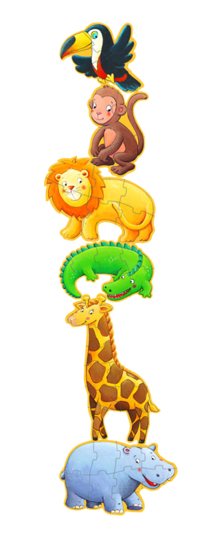 De giraf en het nijlpaard worden gemaakt met 9 puzzel stukjes per dier