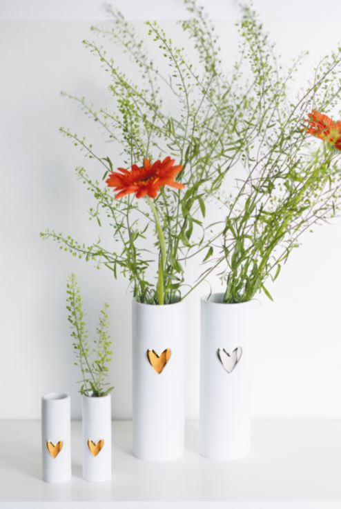 Artikelnummer: 15583Zoals we de waxinelichtjes en kleine vaasjes met het gouden hartje al kenden van Räder, is er nu de grotere variant van het vaasje.