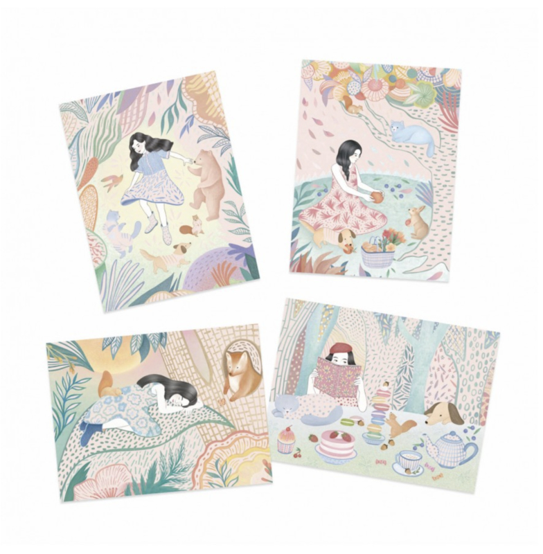 Artikelnummer: DJ09738Dit lieve meisje is aan het picknicken en maakt van alles mee. Gebruik het meegeleverde houten pennetje en kras de bovenste laag weg. Ontdek welke mooie kleuren, lekkernijen en dieren er tevoorschijn komen. Kan jij ook toveren? Wanneer ze af zijn zijn ze ook mooi om in te lijsten of cadeau te geven.