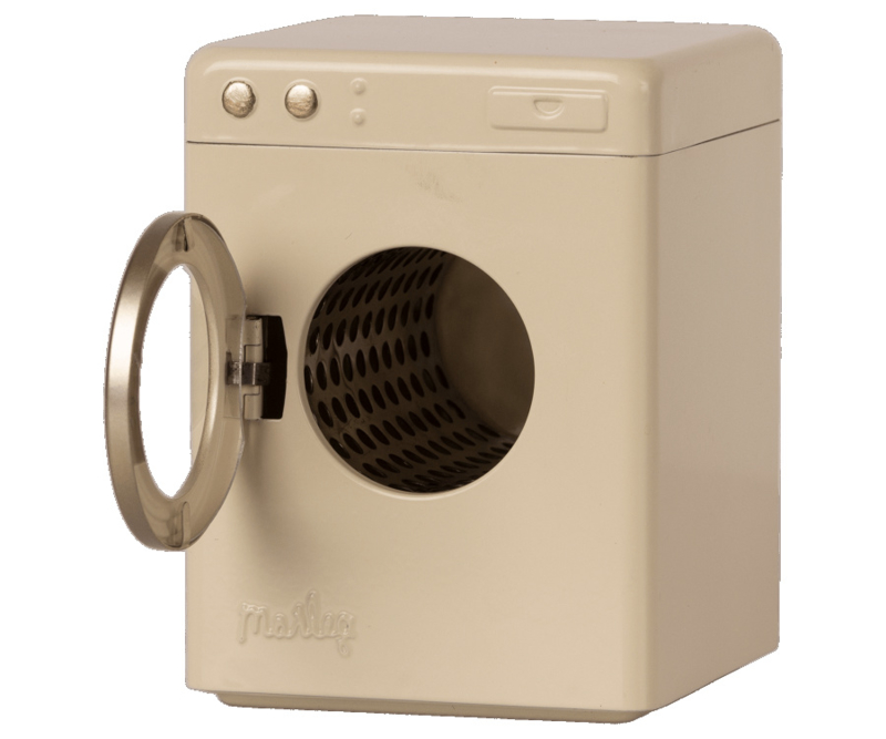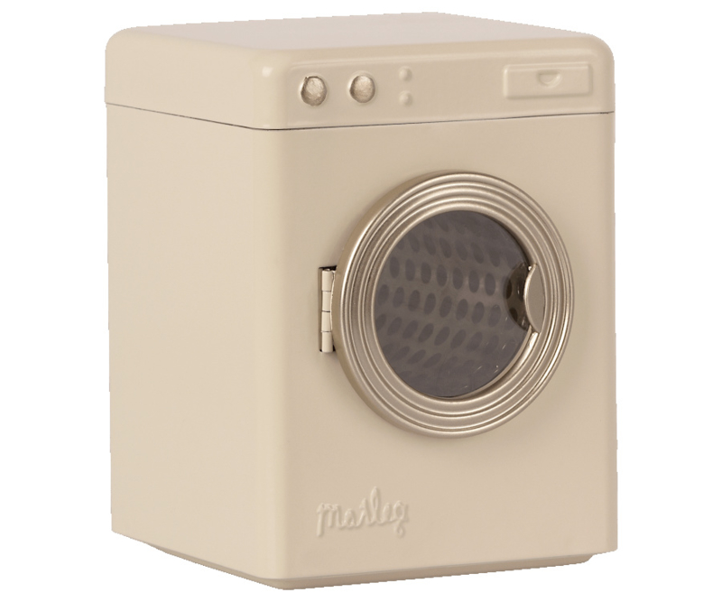 Deze wasmachine is gemaakt van metaal en geschilderd in een gebroken witte kleur en heeft veel details die hem onmisbaar maken in het vertellen van verhalen.