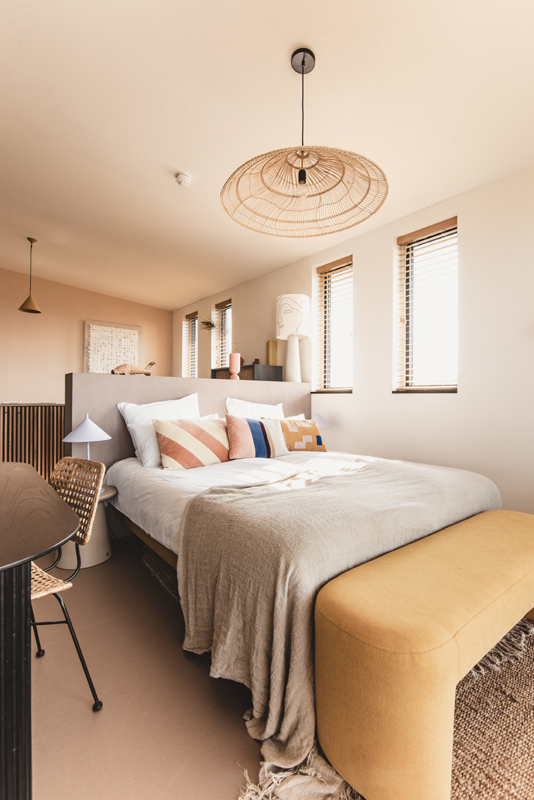 Artikelnummer: TKU2083Gestreept fluweel kussen in de kleur peach en creme