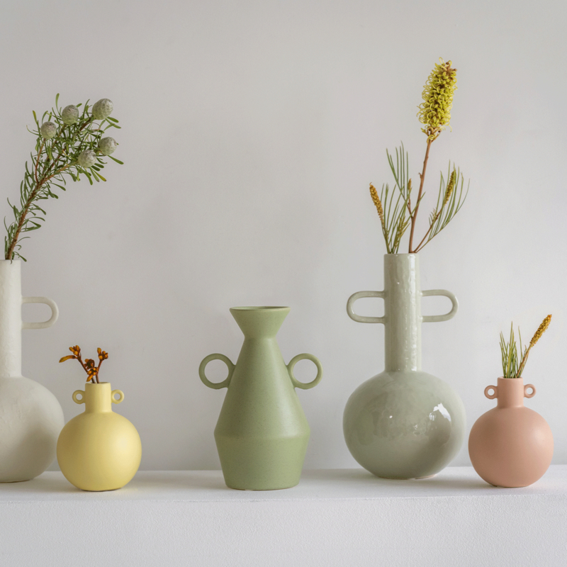 Artikelnummer: 106091Deze keramische vaas, met een glanzende en onregelmatige afwerking in rustgevende kleur Desert Sage, heeft een kleine nek met eigenzinnige, dunne oren en een sensueel rond lichaam - erg mooi met je favoriete (gedroogde) bloemen maar ook zonder is deze vaas een juweeltje opzich.