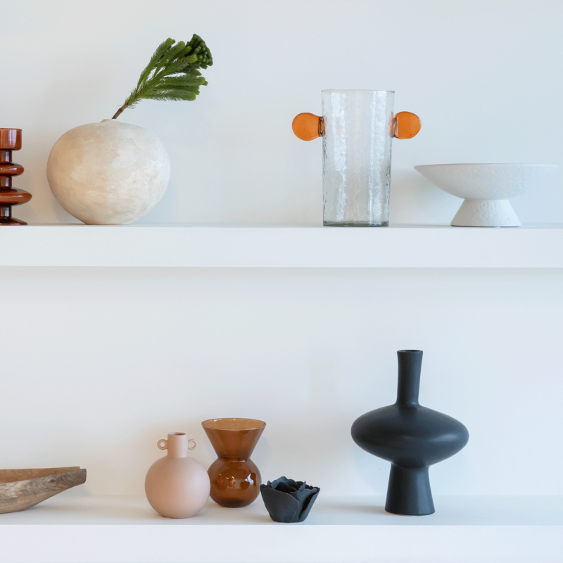 Objecten die op zichzelf staan, maar gecombineerd met bloemen – je zult zien dat elke vaas de bloemen op zijn eigen manier draagt. En dat is iets moois.