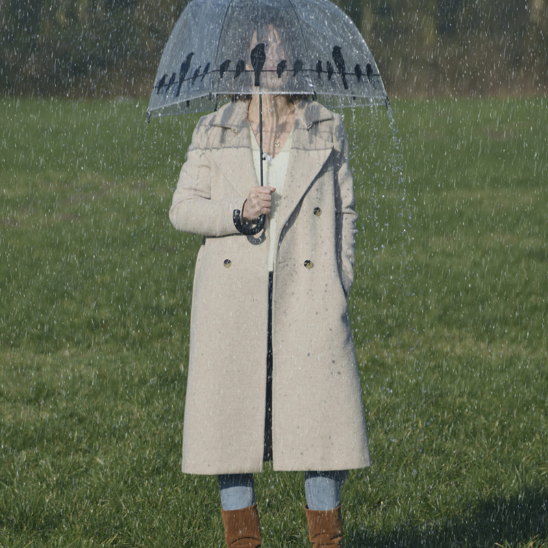 Met deze transparante bedrukte paraplu, is zelfs een wandeling in de regen een plezier. De print laat silhouetten van vogels op draad zien. Dankzij het doorzichtige materiaal krijgt men ook mee wat er om hun heen gebeurt.
